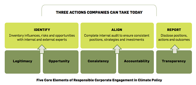 Consistent, positive business engagement with policymakers on climate issues will be a crucial factor in implementing the Paris climate change agreement. Responsible Corporate Engagement in Climate Policy sets out a program of action for companies wishing to demonstrate best practice in policy engagement.